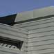 mit Materialdepot. Stahlkonstruktion mit horizontal gewelltem Fassadenblech